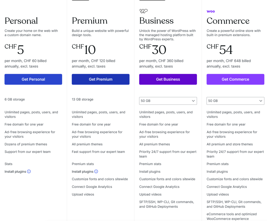 L’autre option est de laisser WordPress gérer l’hébergement, mais cela a un coût. Les différents abonnements et leurs prix sont disponibles sur leur site.